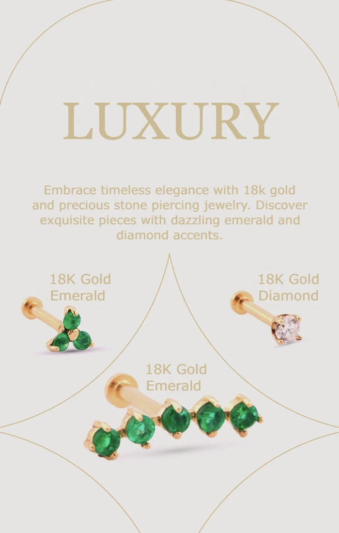 Reach for the Stars: 18k Gold & Colombian Emerald Labret Piercing