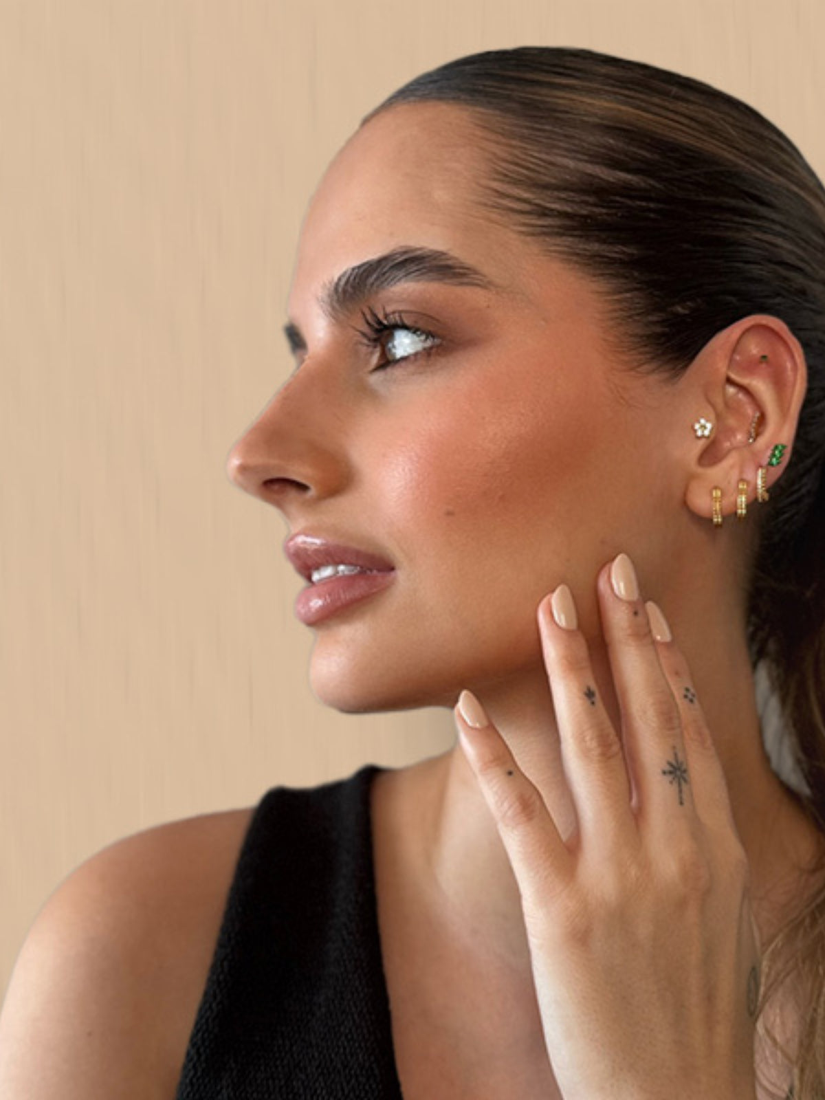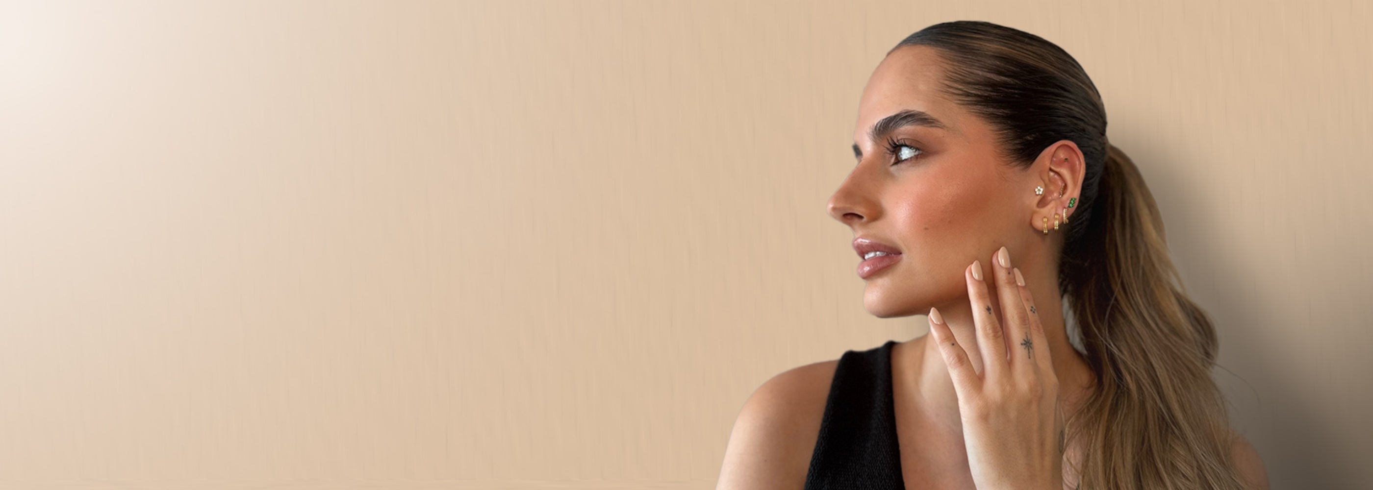 Nuestra colección reúne piezas elaboradas en oro sólido 14K y 18K y titanio grado implante, materiales seleccionados por su durabilidad, biocompatibilidad y acabado de lujo.