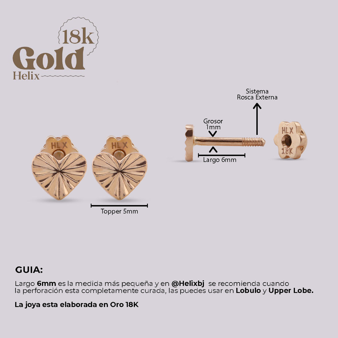 Experience the perfect blend of security, comfort, and elegance with these uniquely designed earrings. Crafted from 18K gold, they feature beautifully engraved heart designs with impeccable finishes and polished details. Our brand's exclusive external threaded post system ensures a perfect, comfortable fit, culminating in a delicate floral accent that adds a distinctive touch. Enjoy the peace of mind that comes with a hygienic and secure system, designed for your ultimate comfort and well-being.