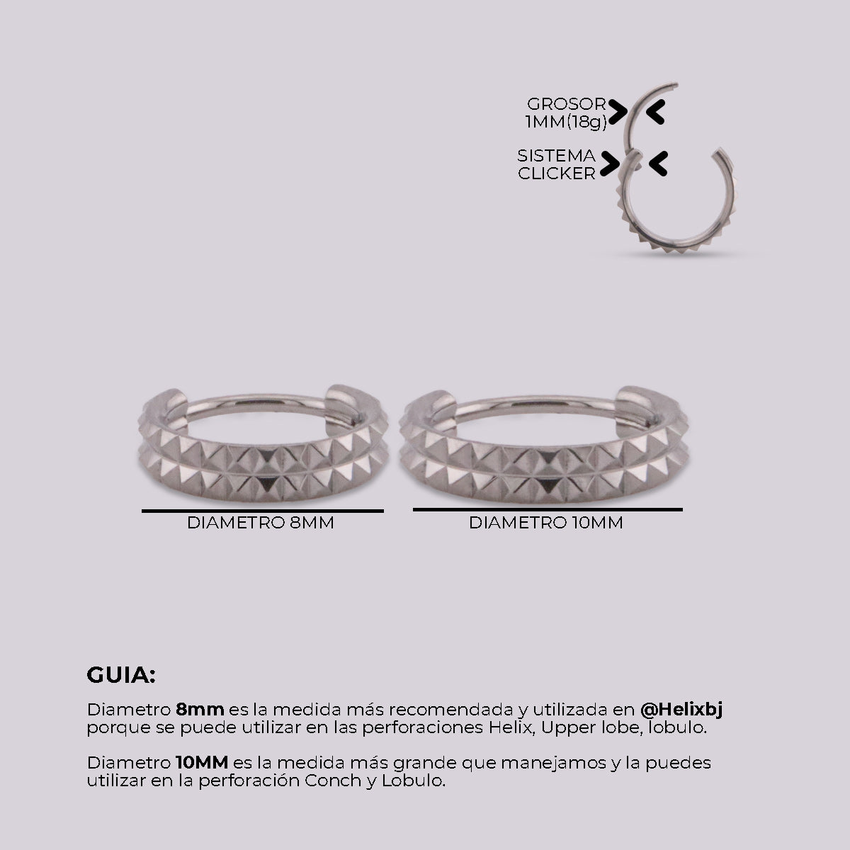 Zonas incluidas: Helix, Flat, Forward Helix, Tragus, Daith, Rook, Conch, Upper Lobe y Lóbulo.