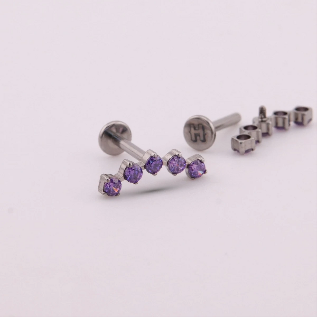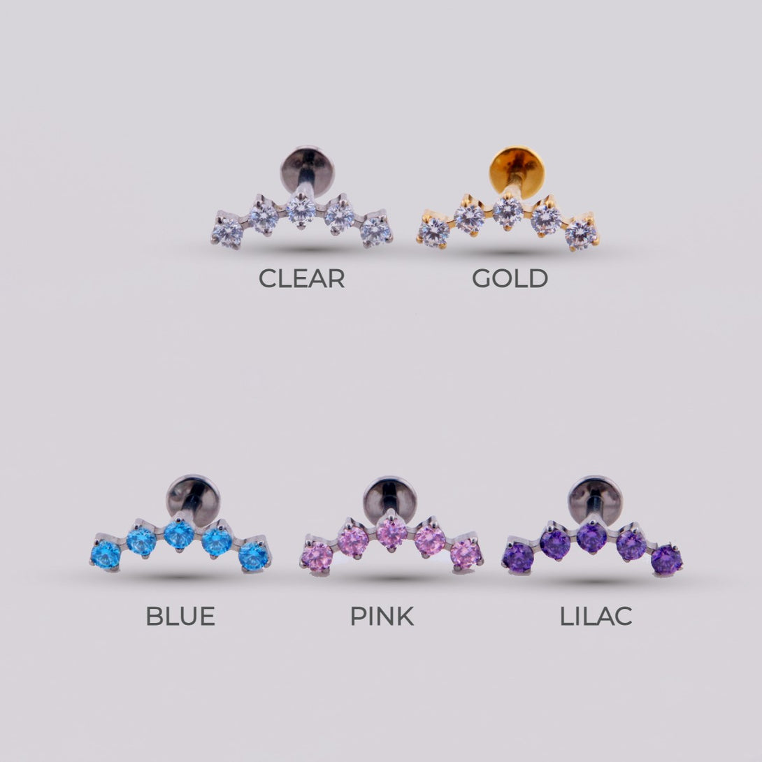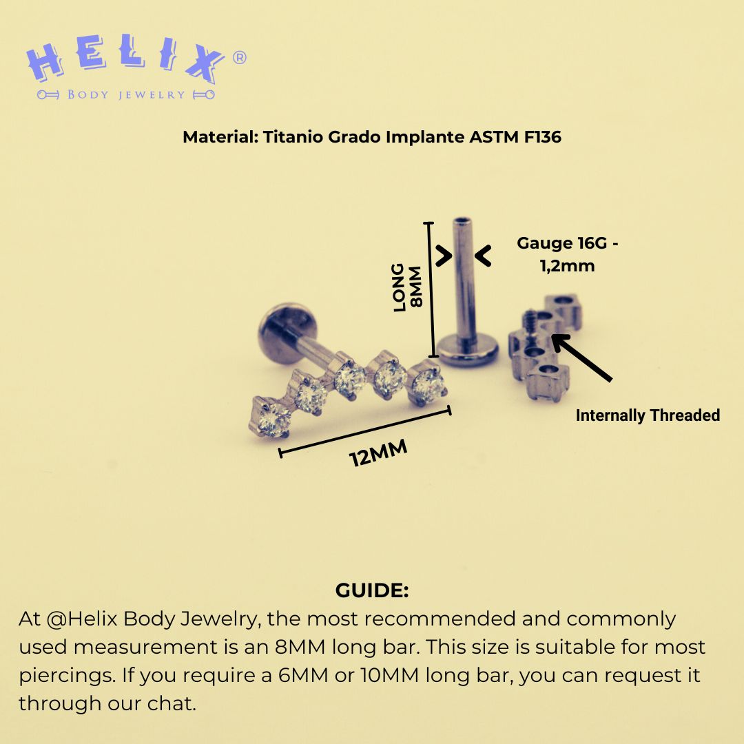 These piercings are made up of five zircon inlays that give a slight curvature and adapt very well to piercings such as Helix and Lobe. This is a piercing that is considered medium size, with a single jewel you can achieve an outstanding and super chic Ear Look and the best thing is that it is in five different colors so you can choose your favorite.