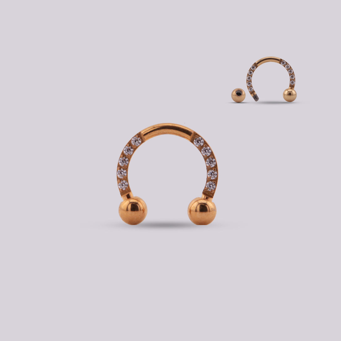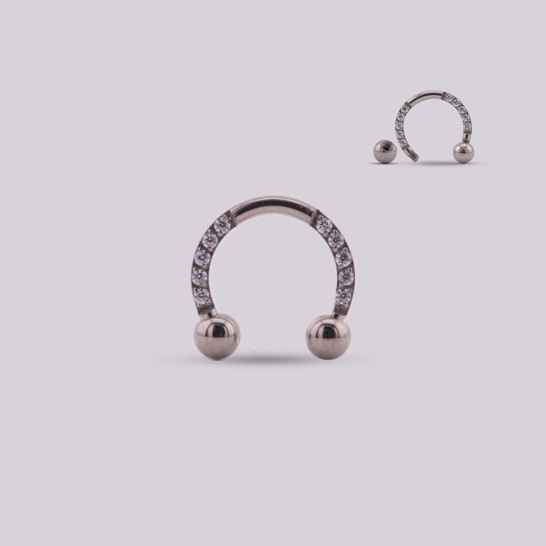 This jewel is a basic in your collection, because you can use it in the Helix, Daith and Septum Nose area. It is titanium with zircon inlays, external thread system for easy manipulation.