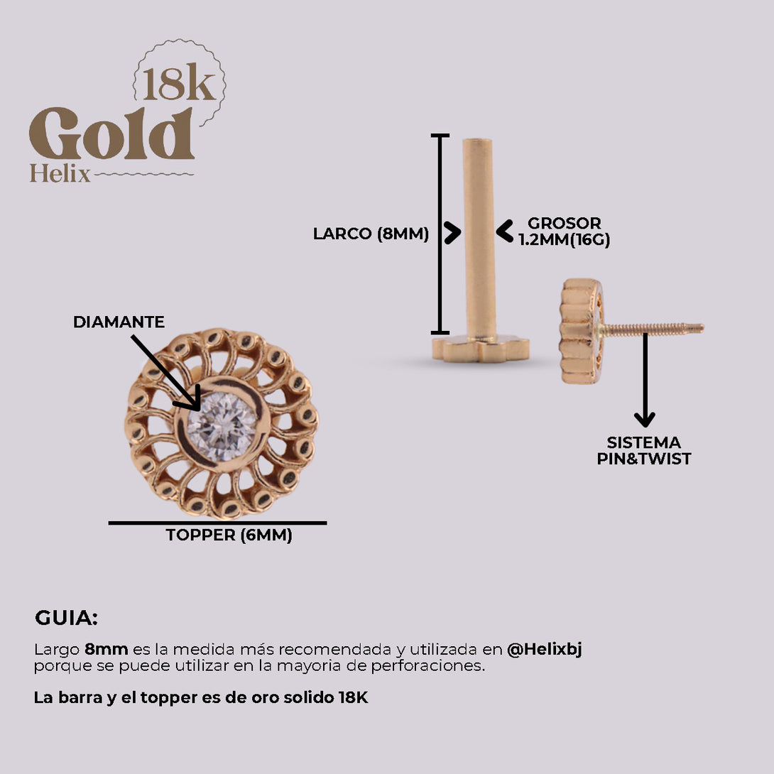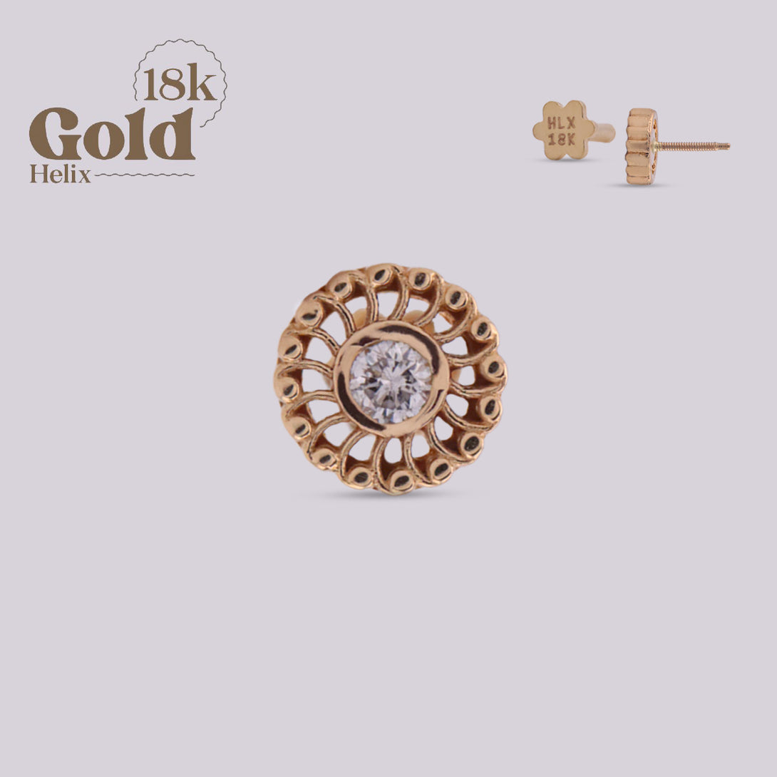 This piece is more than just jewelry; it's a wearable work of art. Crafted with 18k gold and a fine VS/G quality diamond inlay, it stands out for its unique design and exceptional durability. Gold has been prized for its timeless beauty and enduring quality for centuries. Our 18k solid gold piercings are an expression of luxury and distinction, redefining the art of body modification.
