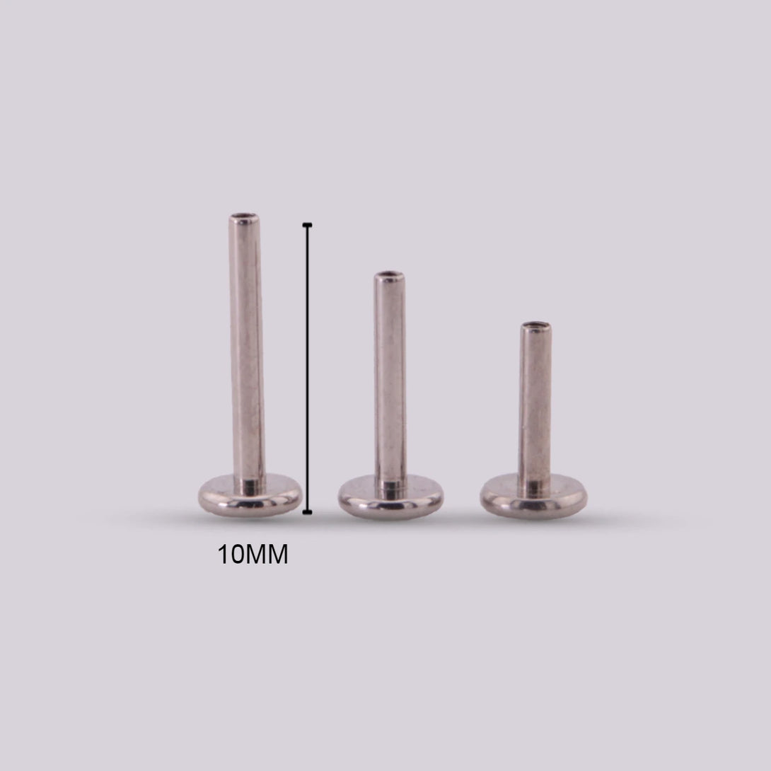 The titanium bars with an internal thread system are available in sizes 6mm, 8mm and 10mm in silver and gold tones. In most of our jewelry, the recommended measurement is 8mm since it is the intermediate size between 6mm, which is the shortest, and 10mm, which is the longest.
