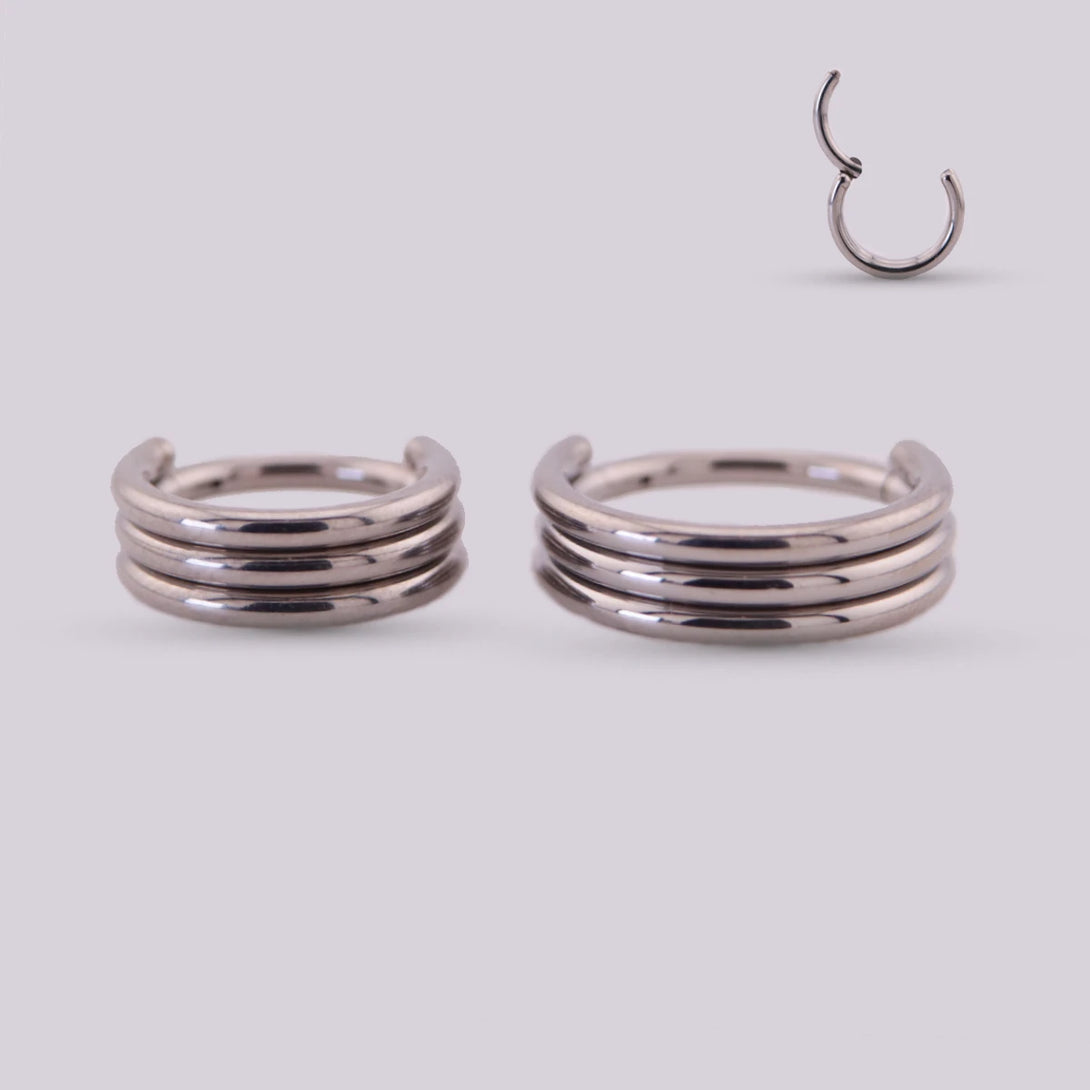 This beautiful jewel has a classic and timeless design composed of three fine lines that form a hoop, it is a jewel that radiates all the natural shine that Titanium has and that allows multiple uses as earrings in Lobes, Upper lobe or for more elaborate piercings. like Conch and Helix