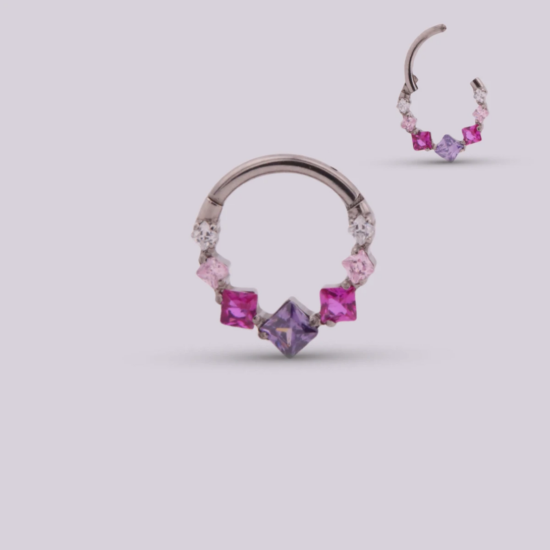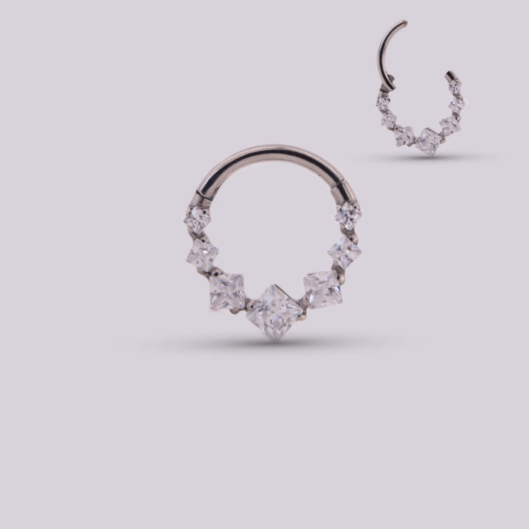 This beautiful jewel for Daith and Septum piercing is made up of seven hexagonal zircon crystals in different sizes, with a larger zircon in the center, it is a piece that reflects glamor and sophistication so that your daith piercing shines and stands out.