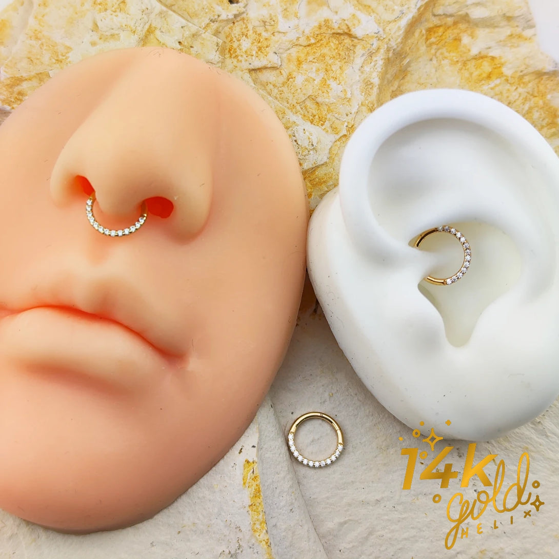 This piercing is also in the top five of the basics that you should have in your collection because it is an elegant piece that makes you look beautiful without much effort. It is made of solid 14K gold with grade 5A Cubic zirconia inlays, easy opening and closing thanks to its clicker system and allows you multiple combinations with other types of jewelry. This piercing will make your Daith and Septum piercings stand out.