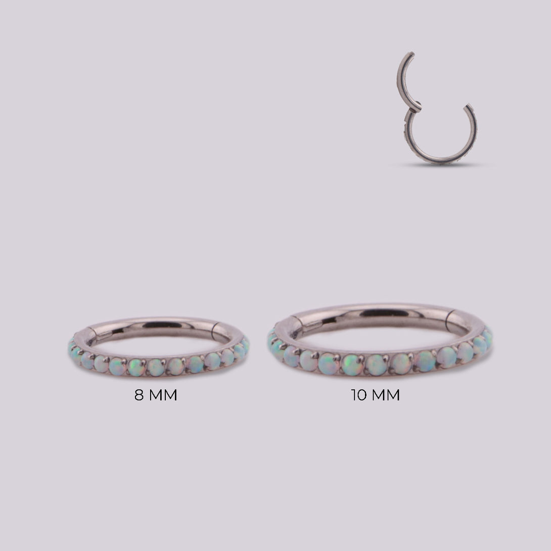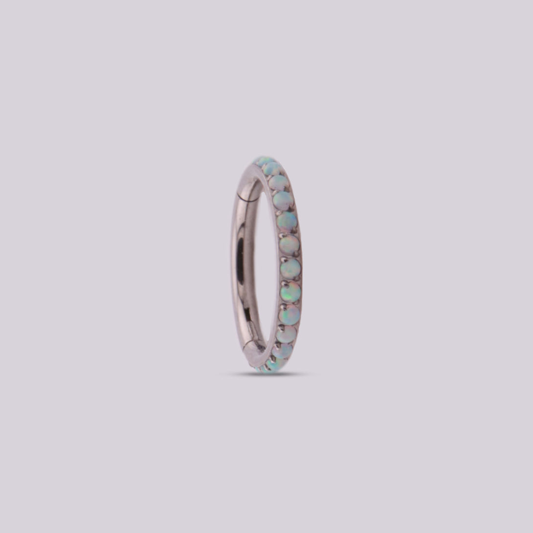 This hoop is synonymous with elegance and beauty, it is made of titanium with N°17 opal stone inlays that reflect the sparkles of light, creating a spectacular optical effect that makes it unique and exclusive. It is light, easy to handle due to its clicker system and with all the quality and style that Helix Body Jewelry offers you. Ideal for your ear piercings in Helix, Upper lobe, Rook and Lobe area.