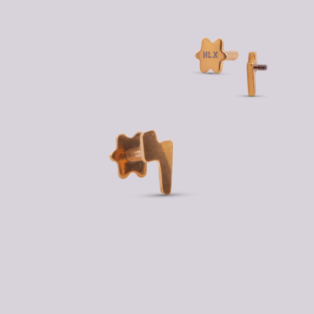 These jewels are shaped like lightning bolt, designed to give shine and beauty to your piercings such as the helix area, lobe, tragus, flat, conch, upper lobe and being made of titanium, it is ideal for initial piercing and also in gold and silver colors. They are versatile and you can combine them with other types of jewelry such as earrings