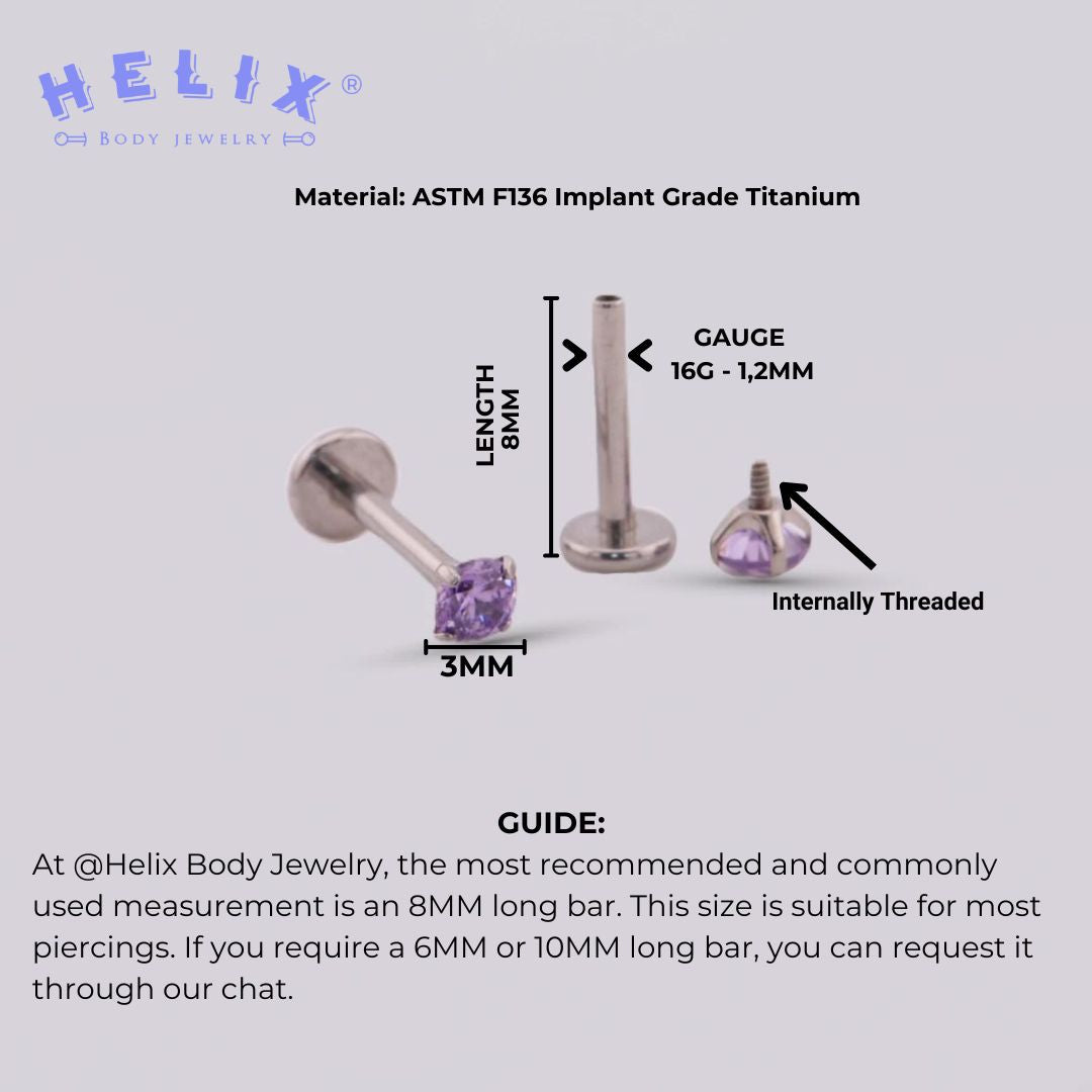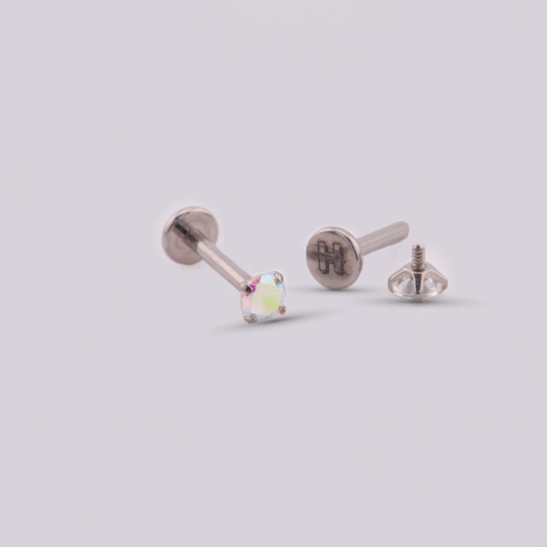 because its small size is ideal in most ear piercings such as Helix, Tragus, Lobe, Upper lobe, Flat, Forward Helix and Conch. It is made up of a bar with a small zircon in the colors Lilac, Aqua and AB (it gives iridescent looks), being made of Titanium you can use it as an initial piercing jewel or in daily use complementing your Ear Look.