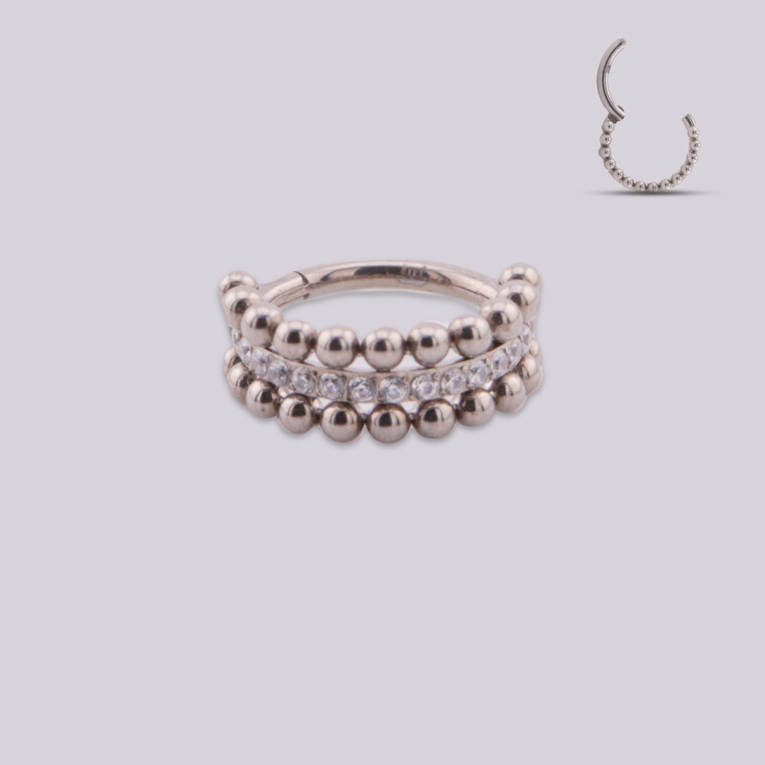 Double hoops continue to be a trend, because with a single piercing you can achieve great effects and your piercings will undoubtedly stand out beautifully. This is a light piece of jewelry, made of hypoallergenic titanium and we have it available in gold and silver, which are very versatile colors that allow you multiple combinations. They are specially designed for the Helix, Upper Lobe and Lobe Zone.