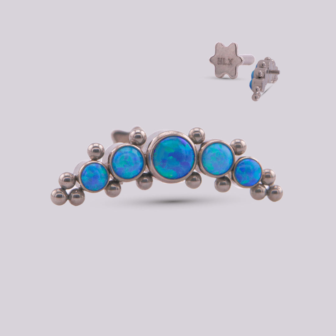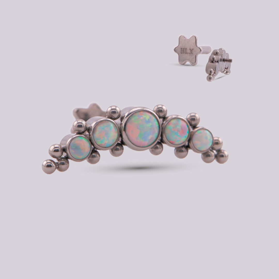 This labret is synonymous with elegance and beauty, it is made of titanium with opal stone inlays N°17 and N°05 that reflect the sparkles of light, creating a spectacular optical effect that makes it unique and exclusive. It is light, easy to handle due to its internal thread system and with all the quality