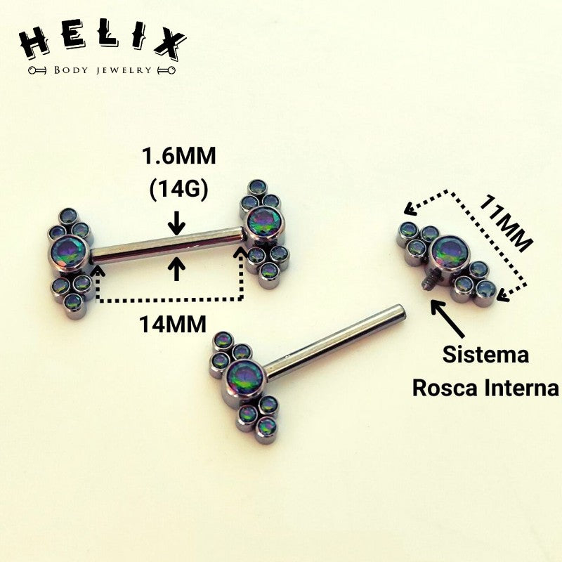 This piercing is an elegant, sophisticated and unique piece; it stands out for its iridescent purple color with small zircon inlays. It is made of titanium, ideal for initial piercing and as jewelry for daily use because it is hypoallergenic and water resistant. This jewel is sensual, feminine and very glamorous.