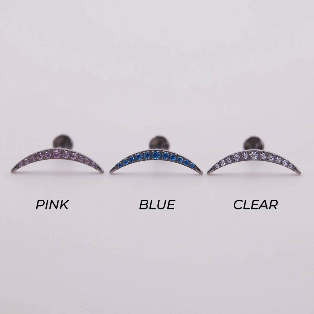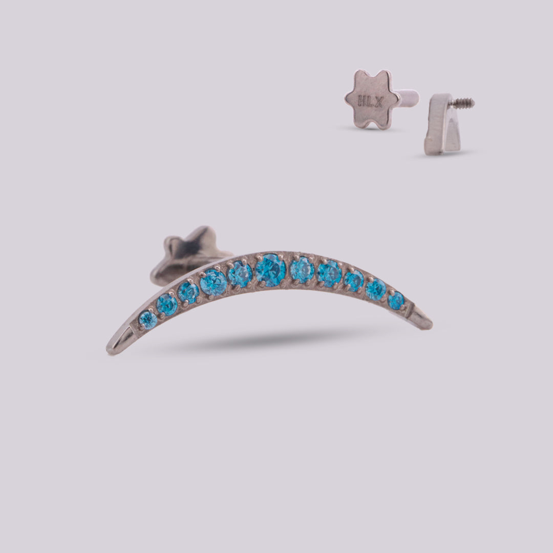 Experience the difference with our half-moon-shaped titanium Labret – Seti, with a beautiful half-moon shape and slim design. Available in Blue, Pink and Lilac tones. A unique jewel for piercing lovers.