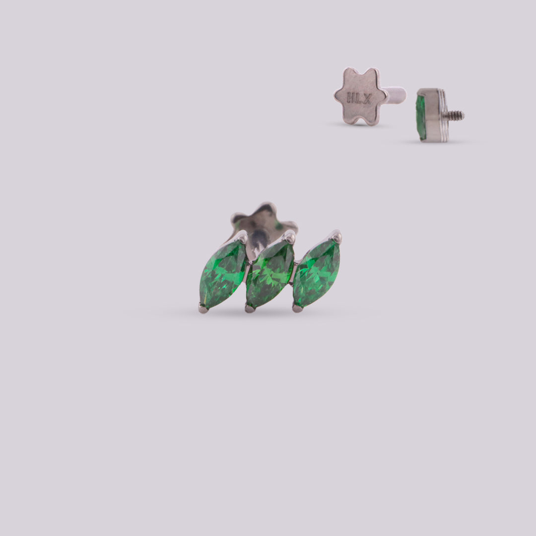 Give elegance to your ear piercings with our titanium jewelry for Sefora piercing. Composed of three hexagonal stones in Blue, Green and Red that form a delicate figure. It is suitable for initial piercing and daily use, since it is waterproof, it stands out with its originality and style.