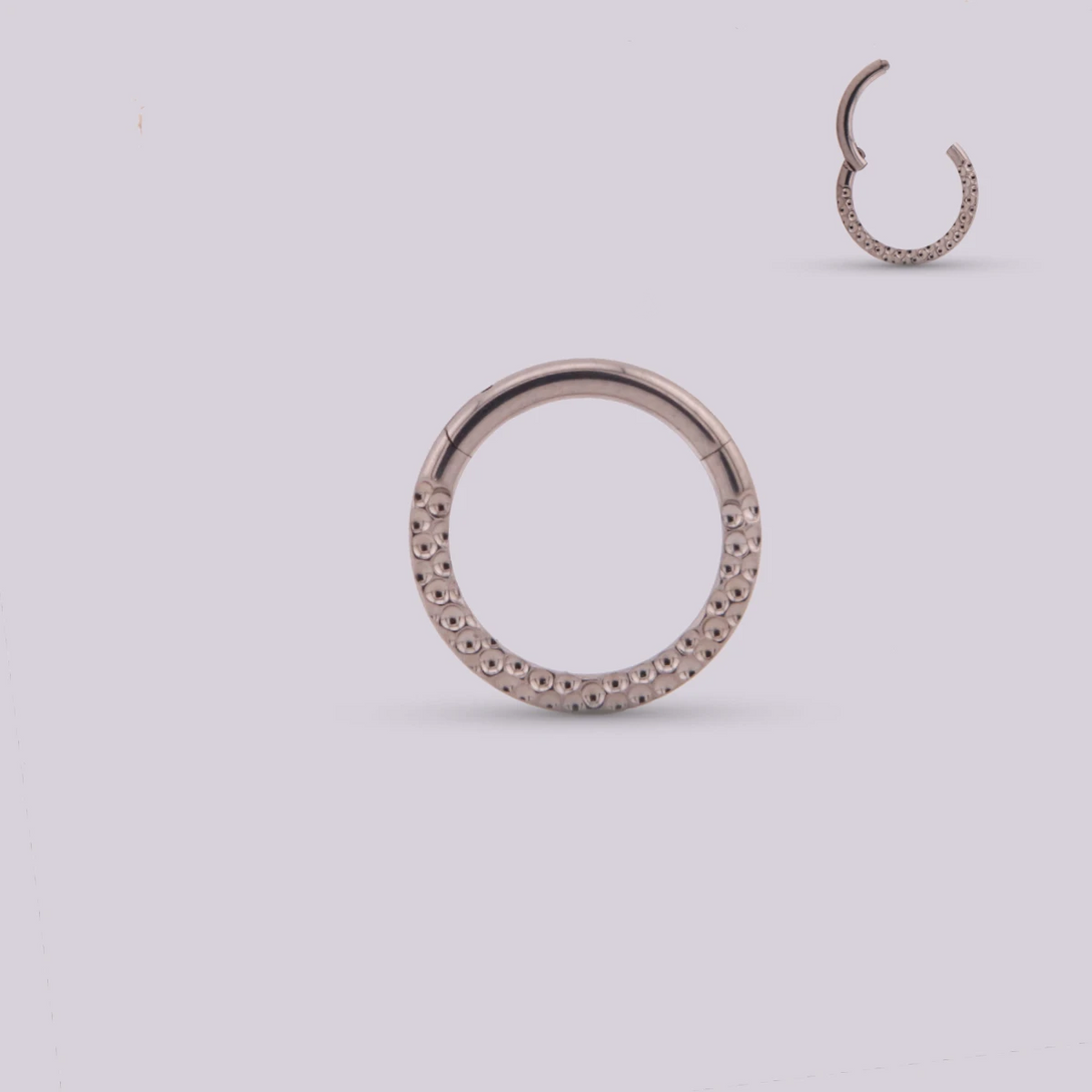 This jewel is characterized by not having rhinestones but delicate bevels that form a texture of fine finishes. The engraving is located frontally, which is why this piercing is recommended for piercings such as Daith and Septum.